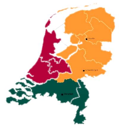 11 Luchtmobiele Brigade in Schaarsbergen (rood in tekening) telt 20 NATRES-bataljon, die de brigade kan inzetten in het midden en westen van Nederland.